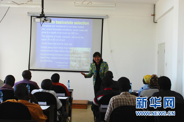 示范中心副主任、吉林农业大学农学院教授包和平介绍说:“中心培训课程的设置,主要是传授给赞比亚农户实用技术,老师是来自吉林农业大学和赞比亚大学的农业教授,培训过程理论结合实际,注重学员实际操作。”