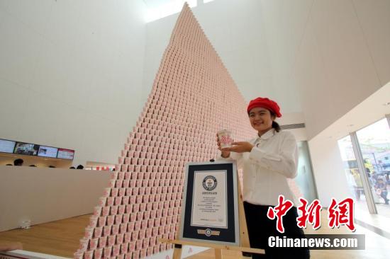 当地时间9月21日,日本横滨民众观看桶装方便面搭建的金字塔。这个金字塔高7.4米,共用57155桶方便面搭建而成。日本日清食品的雇员搭建了这个69层的金字塔,纪念桶装方便面发明44周年,吉尼斯世界纪录于18日认定该金字塔为世界最大的包装食品金字塔。