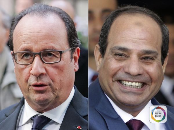 法国总统奥朗德(左)和埃及总统塞西。(图片来源:新华/美联)