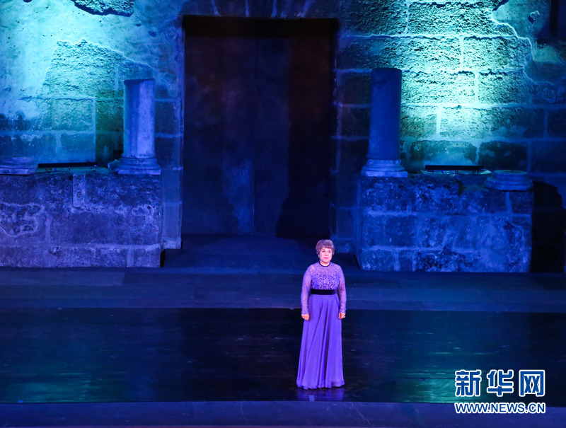 9月24日,世界著名女高音歌唱家、来自新疆的迪里拜尔·尤努斯表演《我是一个美丽的新娘》。当日,第22届阿斯潘多斯国际歌剧和芭蕾艺术节的压轴演出开场,来自土耳其、俄罗斯、阿塞拜疆、中国等国家的艺术家们联手为现场石阶上就坐的300多名来自世界各地的观众献上歌剧和芭蕾的盛宴。新华社记者邹乐 摄