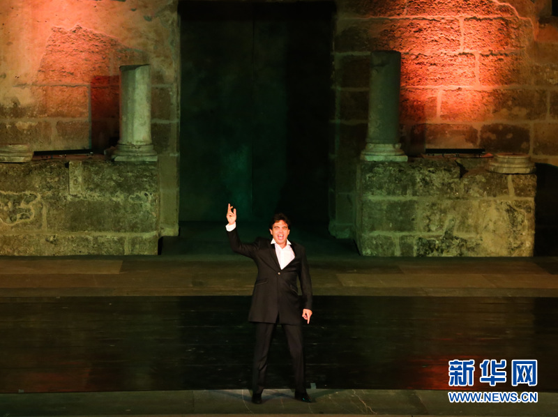 9月24日,俄罗斯艺术家进行演出,奔放激昂。当日,第22届阿斯潘多斯国际歌剧和芭蕾艺术节的压轴演出开场,来自土耳其、俄罗斯、阿塞拜疆、中国等国家的艺术家们联手为现场石阶上就坐的300多名来自世界各地的观众献上歌剧和芭蕾的盛宴。新华社记者邹乐 摄