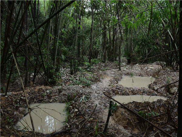 图为老挝阿速坡省境内的叶腊石盗洞。