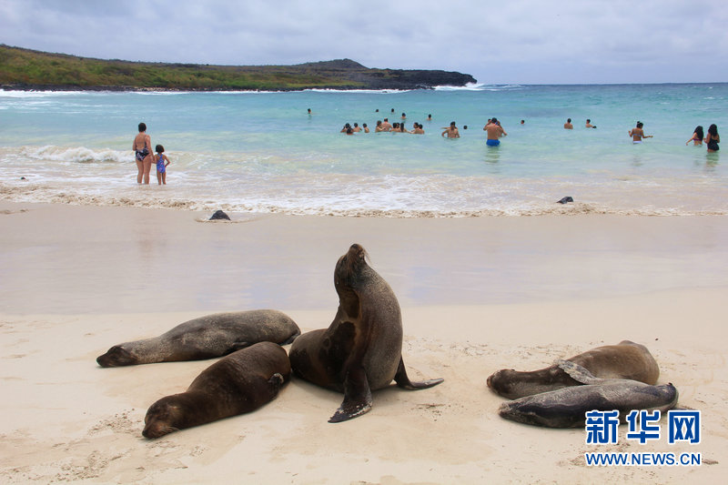 加拉帕戈斯群岛动植物物种及其丰富,有“活的生物进化博物馆和陈列室”之称。 达尔文参观了群岛后,从中得到感悟,为《进化论》的形成奠定了基础。加拉帕戈斯群岛由19个火山岛组成,从南美大陆延入太平洋,约1000公里,该陆地的地理环境也令人惊叹,白色海滩和黑色火山岩石形成鲜明对比。岛上现存一些不寻常的动物物种,如象龟、蓝脚鲣鸟、红脚鲣鸟、海狮和多种类型的雀类。岛上的居民热情好客,每年吸引数以万计的游客。新华社记者梁君茜摄