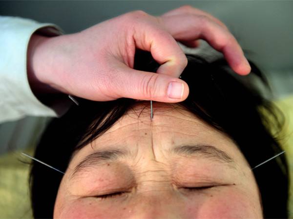 图为3月20日,在济南市中医院,一位有睡眠障碍的患者在接受中医针灸治疗。