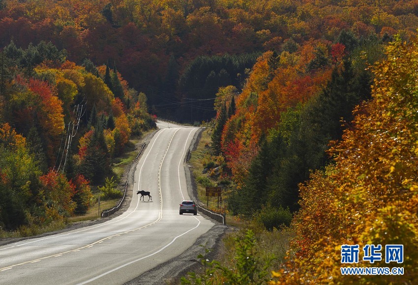 麋鹿横过马路汽车需让行