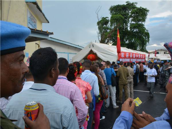红烧鱼、蒜香排骨、手抓羊肉……一道道中餐美食整齐地摆放在摊位前,中国美食摊位已经被有备而来的各国食客围得水泄不通了。来宾们手里攥着五颜六色的餐券,排在后面的人一边排着队一边迫不及待地不停向摊位这边张望,生怕盼望已久的中餐美食被提前抢光。