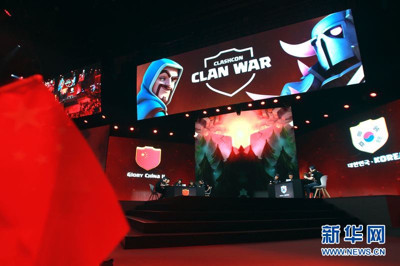 中国队与韩国队进行四分之一决赛。赫尔辛基会展中心24日举行手机游戏“部落冲突”全球总决赛,代表中国参赛的Glory China 1队获得最终胜利。新华社记者李骥志摄