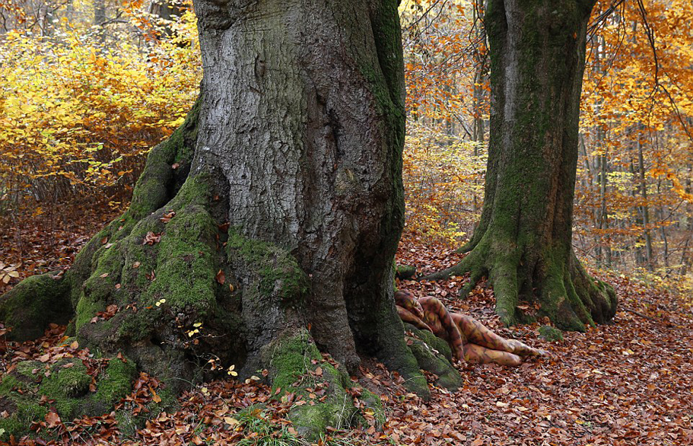 德国人体彩绘模特"隐身"秋日森林(高清组图)