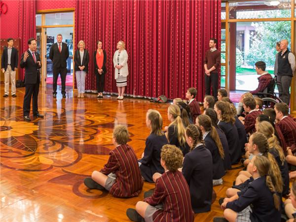 新华网北京11月13日电 11月12日一早,中国驻澳大利亚大使馆迎来了一批小客人。80名来自塔斯马尼亚州斯科奇-欧克伯恩学校的小学生来到这里,受到中国驻澳大使马朝旭的热烈欢迎。