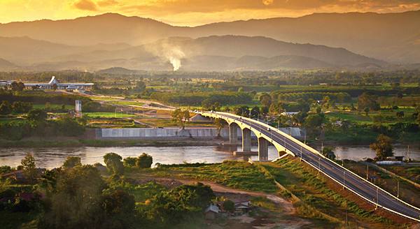 这是由中、老、泰三国共同建设,横跨湄公河连接泰国清孔和老挝会晒的清孔—会晒大桥的资料照片。