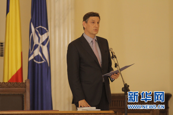 副总理兼经济、贸易和旅游部长科斯廷•格里戈雷•博尔克宣誓就职。新华社发(佩特雷斯库摄)