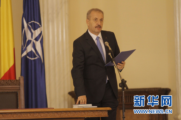 副总理兼地区发展和公共行政部长瓦西里•登库宣誓就职。新华社发(佩特雷斯库摄)