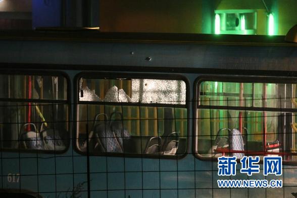 11月19日凌晨,在波黑萨拉热窝附近,一辆遭到枪击的客车停在路边。波黑国防部19日证实,11月18日夜,一名袭击者在萨拉热窝附近一处军营射杀两名士兵,并向一辆大客车开枪,击伤另外一名士兵,之后逃回自己住所内自杀。 新华社发
