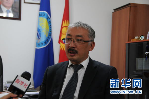吉尔吉斯斯坦地矿署副署长鲁斯库罗夫正在接受新华社采访。新华社发