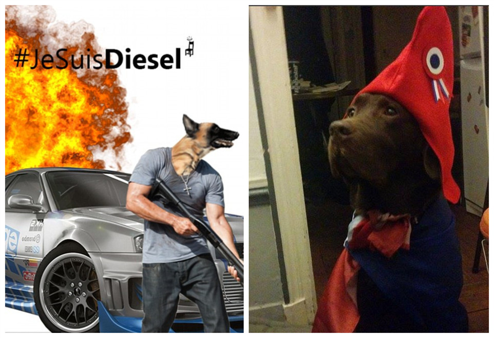 全球汪星人晒自拍 向巴黎恐袭遇难警犬致敬(组图)