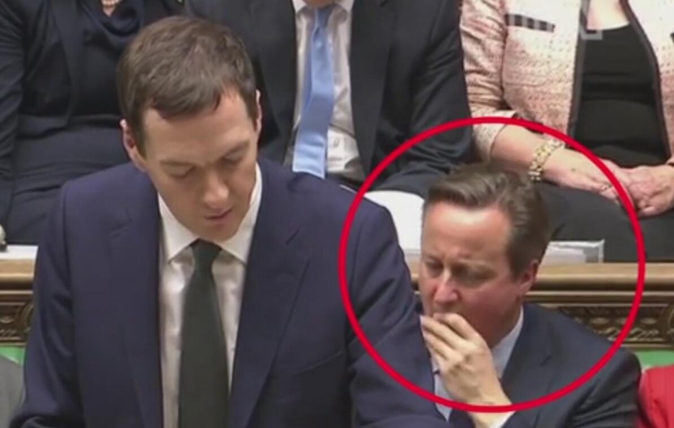 当地时间25日,英国财政大臣乔治·奥斯本(GeorgeOsborne)发布了秋季声明,同时他还公布了财政支出评估。奥斯本讲话过程中,在其身后坐着的英国首相卡梅伦突然将一块糖果放到嘴里,这一有趣的画面被摄像机捕捉了下来。(网站截图)
