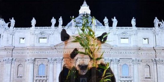组图:梵蒂冈环保灯光秀 大型动物图片点亮大教堂