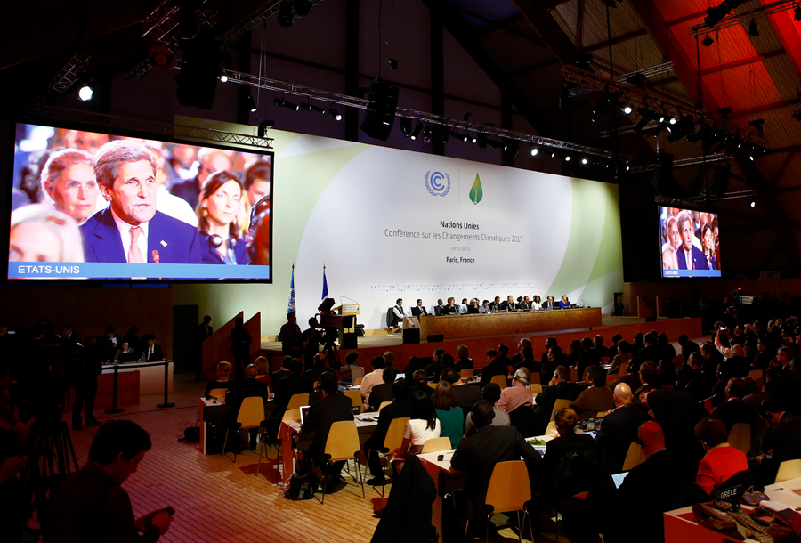 12月12日,在巴黎北部市郊的布尔歇展览中心,法国外交部长、巴黎气候变化大会主席法比尤斯在巴黎气候变化大会上落锤,标志着巴黎气候协议的达成。联合国大会主席吕克托夫特12日发表声明,欢迎巴黎气候变化大会当天通过全球气候变化新协议。