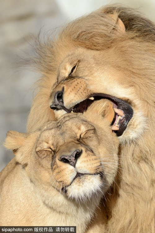 当地时间2015年12月14日,捷克,Usti nad Labem动物园里的安哥拉狮Leon和Ronja。(图片来源:Sipa Photo)