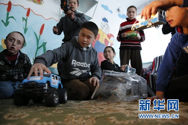 孤儿院的孩子们拿到了来自中国的玩具立刻玩起来。