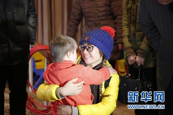 先天无法开口说话的小伊娃(化名)和看望孤儿的中国商户郑婉君相拥在一起。