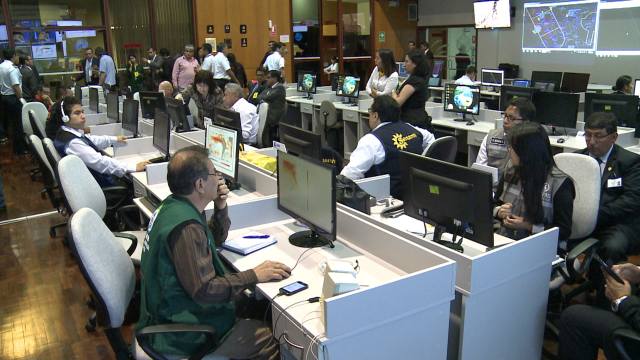 应急行动中心协调员费尔南多·瓦帕亚介绍说,这里汇集了秘鲁全国水源、气象、民防、地震、交通、通信等30多个相关领域的专家,他们进行24小时全天候的监控,并对获取的数据进行分析评估。一旦发生紧急情况,应急行动中心便可“遥控”救援部队、国民警察、消防、气象、卫生、环保等多部门联合行动,形成统一指挥、各司其职、快速行动、运转畅通的调度指挥体系。