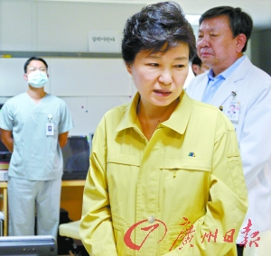 今年6月14日,朴槿惠前往首尔大学医院MERS隔离病房视察。