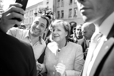 9月10日,德国总理默克尔慰问抵达德国寻求避难的难民。
