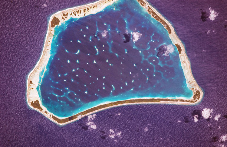 库克群岛Manikiki环礁的海平面极易受到海平面上升影响的现状。