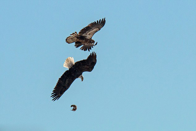 美国两秃鹰空中激战抢夺土拨鼠(组图)