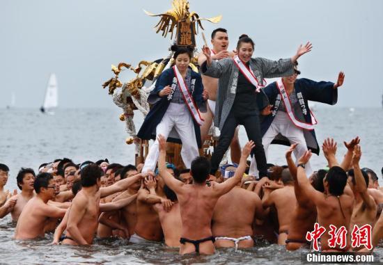 日本成人祭典 众人赤身抬神龛入海(组图)