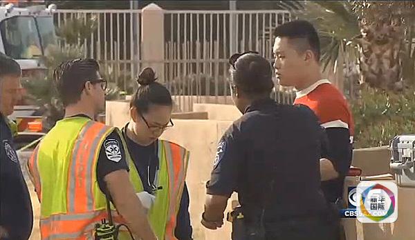 图为警方在案发现场调查。(美国电视新闻画面截屏)