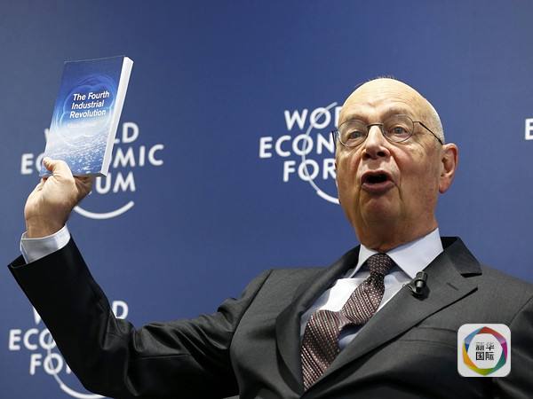 世界经济论坛创始人施瓦布向媒体介绍其新书《第四次工业革命》。(图片来源:新华/路透)