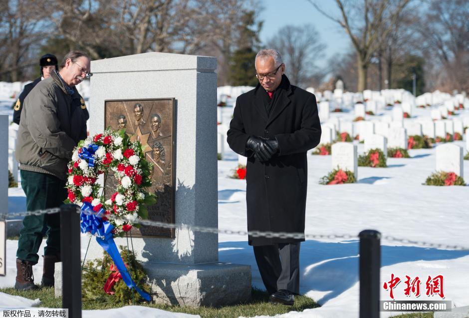 美国航空航天局局长查尔斯·博尔登(右)与“挑战者号”遇难宇航员Judith Resnik的哥哥Chuck Resnik一起在阿灵顿国家公墓为遇难的七位宇航员默哀。