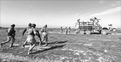 一月二十七日,伊拉克一军事基地内,美国士兵指导伊拉克部队进行实弹演习。