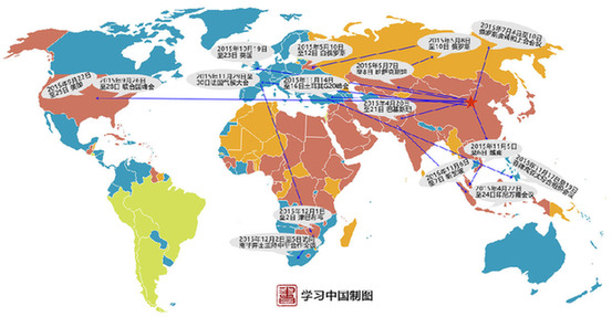 图为:2015年习近平外交足迹