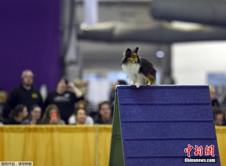 当地时间2016年2月13日,美国纽约,第40届威斯敏斯特狗展上,年度狗狗敏捷大师锦标赛举行,狗狗们比拼敏捷度,挑战各种障碍。