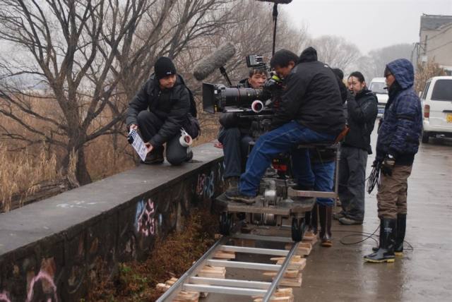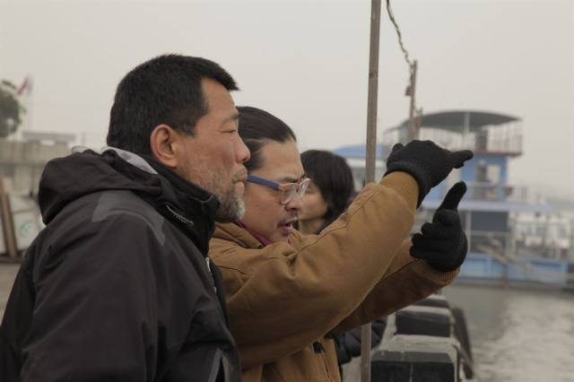 《长江图》官方工作照,图中为导演杨超,图左为摄影师李屏宾
