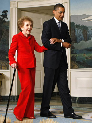 美国总统贝拉克·奥巴马和夫人米歇尔发唁电对南希过世表达哀悼,称“是她重新定义了美国‘第一夫人’的角色”。