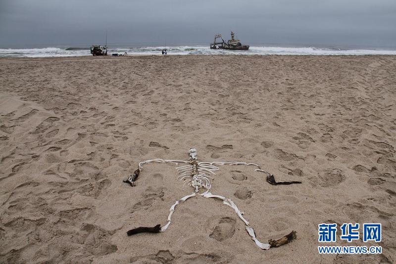 骷髅海岸,海滩上人们用海豹骨头摆成骷髅的样子。新华网记者吴长伟摄