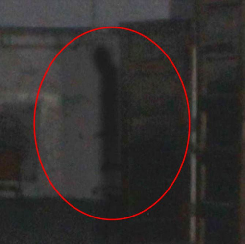 但仔细看照片,将画面放大、影像加强,却可以看到有疑似“鬼影”在门后方,他们相信这是住在“另一个世界的人”。