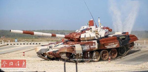 资料图:俄罗斯坦克大赛上的亚美尼亚陆军T-72BV主战坦克。