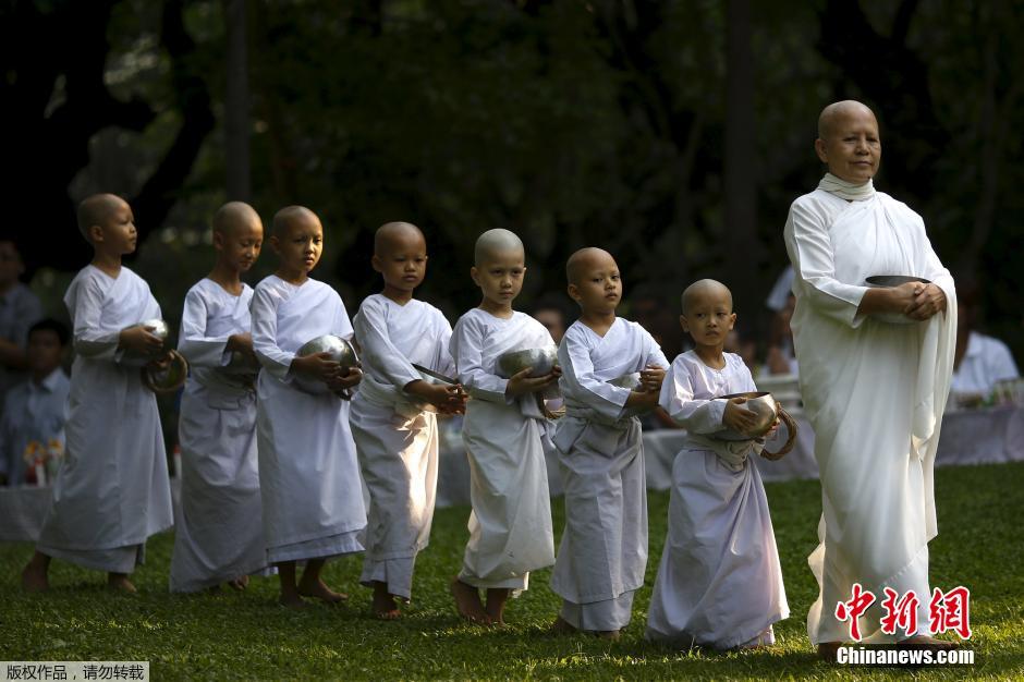 泰国迎宋干节 小比丘尼化斋萌萌哒(组图)