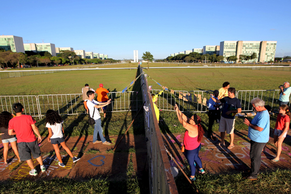 在众议院表决弹劾案前夕,巴西警方则如临大敌,加强在各城市维持秩序的力量。路透社报道,警方在国会大楼周边设立了长约1公里的铁栅栏,用以隔离分属支持和反对阵营的数以万计民众。这段栅栏被示威者戏称为“柏林墙”。在里约热内卢,警方在知名景点科帕卡巴纳海滩上同样设立了隔离线,防止支持者与反对者发生冲突。 <<<点击详细