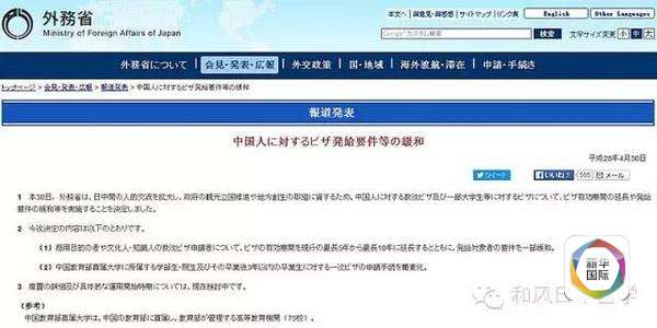在中日外长会晤的当天,即4月30日,日本外务省网站就刊登了“放宽对中国人签证发放条件”的公告。