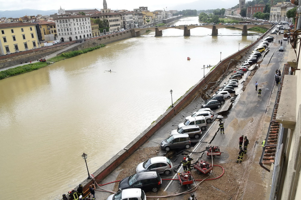 意大利佛罗伦萨一处堤岸塌陷