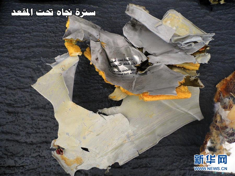 这是5月21日埃及军方提供的打捞到的埃航失联客机残骸照片。埃及军方20日上午宣布,搜救团队在埃及亚历山大港以北290公里处发现埃航失联客机残骸。 新华社发(埃及国防部提供)