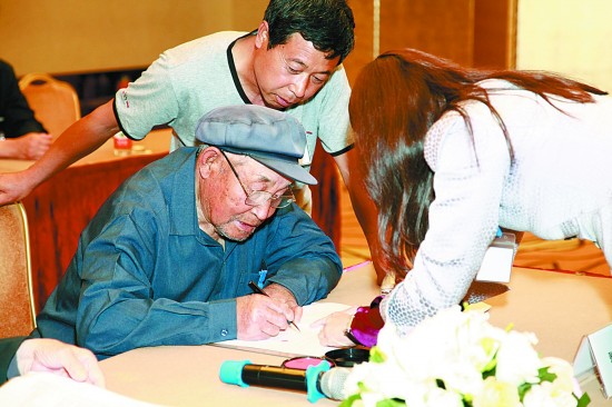 劳工闫玉成将自己书写的“恩重如山”赠送给童增。佚名/摄