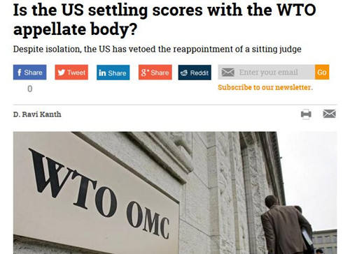 根据英国《金融时报》和彭博社的报道,美国方面以世贸组织上诉机构对3起涉及美国的案件和另一起案件的裁决为例,称世贸组织裁判专家组存在越权和发布“抽象”裁决的模式。