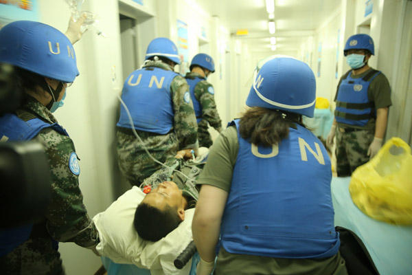 2016年5月31日,在马里北部加奥,中国第四批赴马里维和医疗队救治袭击事件伤者。 新华社发赵子权摄